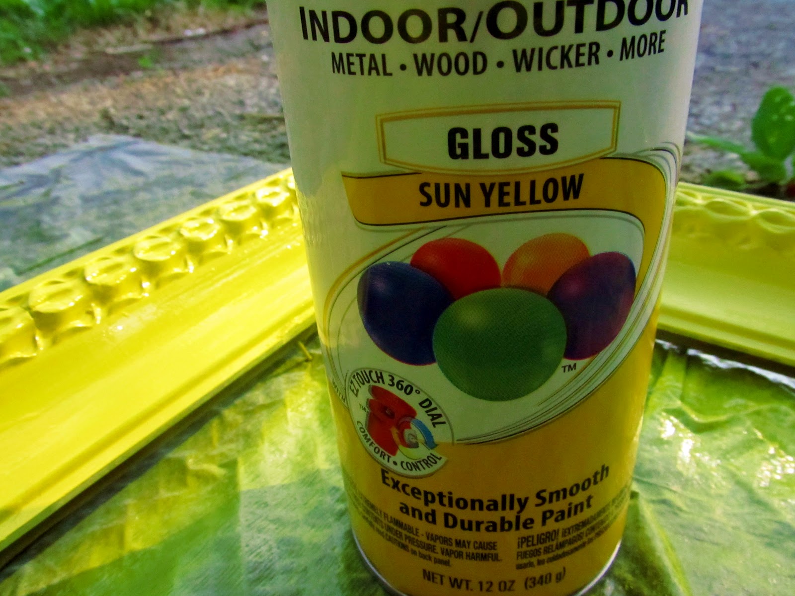 I removed the frame, primed it, spray painted it a gloss yellow & set it aside to dry