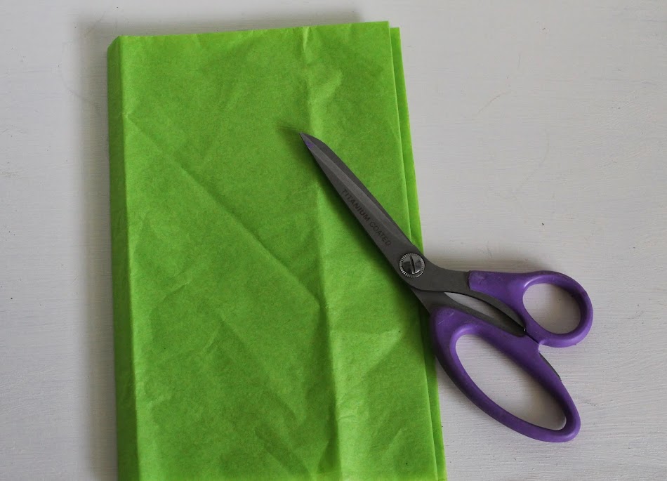For the tassel, I folded a piece of tissue paper in half length wise, then twice more to get an easily cut-able width.